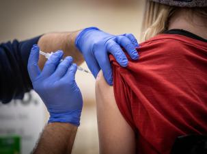 Eine Person erhält eine Covid-Impfung in die Schulter