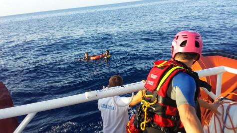 Ein Rettungsteam bei einer Seenotrettung