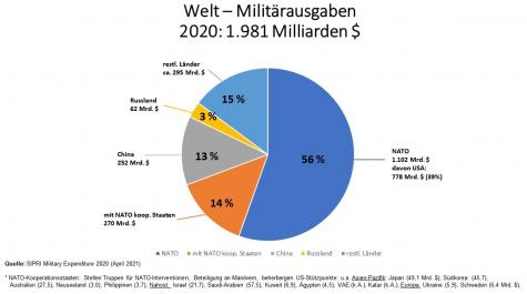 Als größtes Militärbündnis weltweit mit mittlerweile 32 Mitgliedsstaaten wird die NATO auf unserer Plattform beleuchtet. Bei Bessere Welt Info findest du über 1000 handverlesene Links mit allgemeinen Infos, Strategien sowie eine Budgetübersicht der NATO. 2024 betrugen die Gesamtausgaben der NATO beispielsweise fast 380 Milliarden US-Dollar - so viel wie nie zuvor. Außerdem findest du bei uns wichtige Informationen zur NATO Expansion und Warnungen vor einem daraus resultierenden Krieg mit Russland als Folge der Erweiterung.